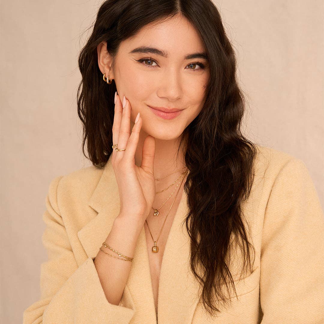 Each gumdrop shaped pendant has a coloured cubic zirconia stone making them as sweet as the candy that inspired this necklace. With an extra long chain this necklace can be added to any existing stack to add a pop of fun and sparkle.